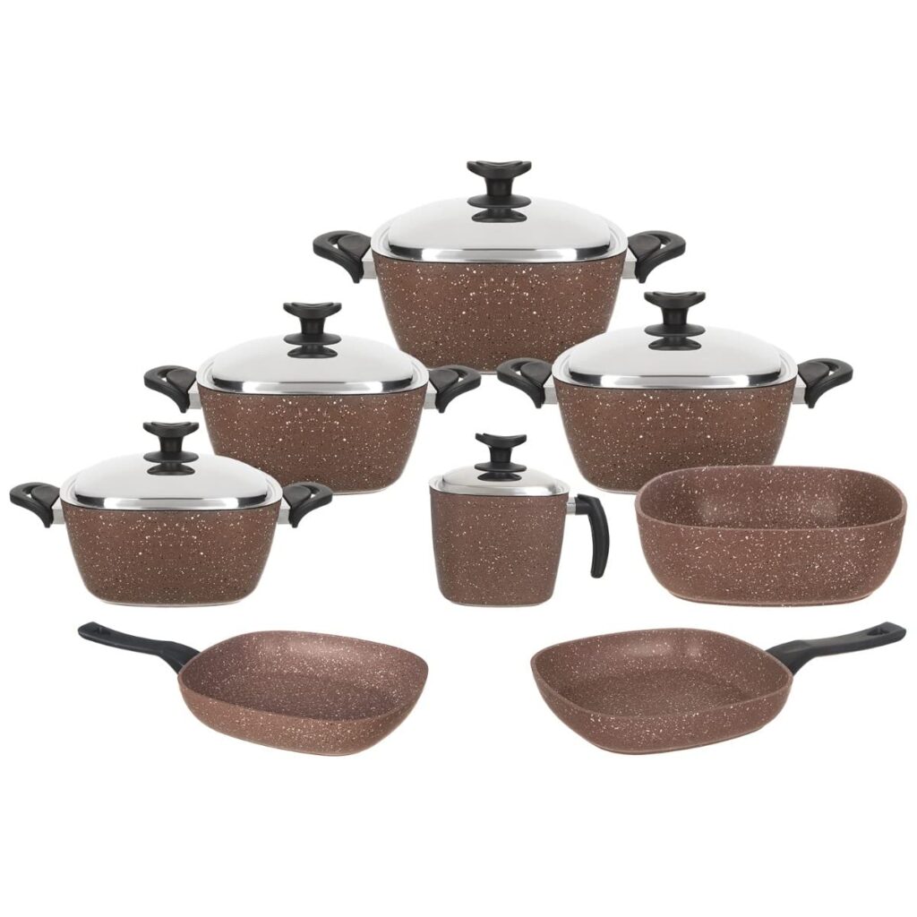 طقم حلل جيرانيت 13 قطعة مربع بنى – سافلون