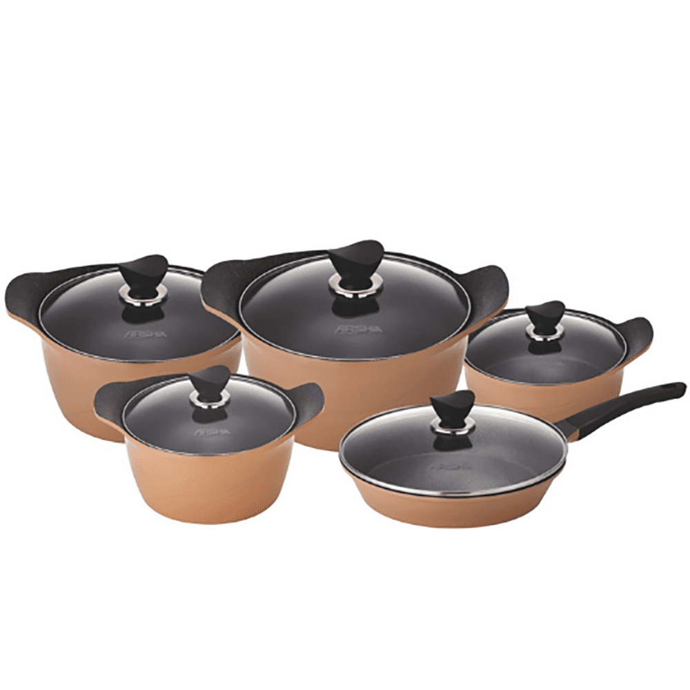 طقم حلل جيرانيت مضلع 10 قطعة بيج – نيوفلام