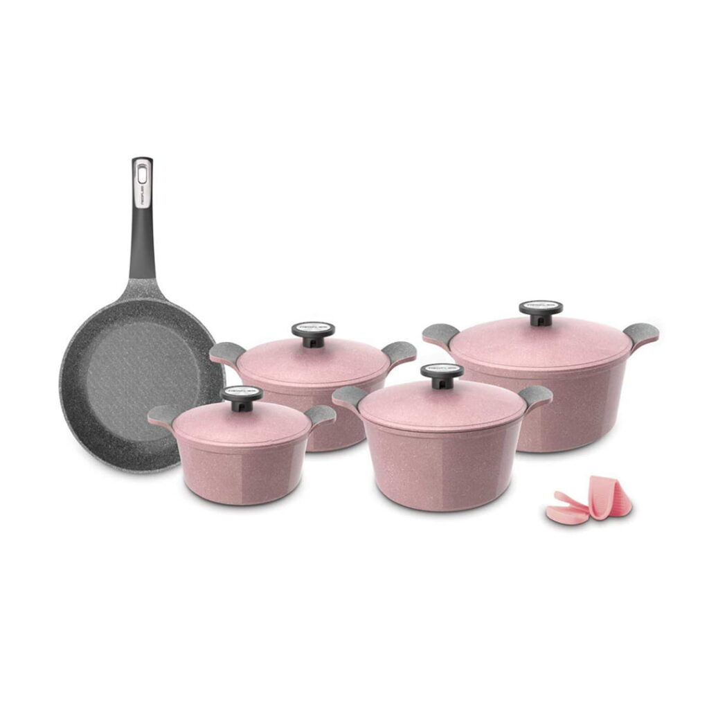 طقم حلل جيرانيت مضلع 9 قطعة روز – نيوفلام