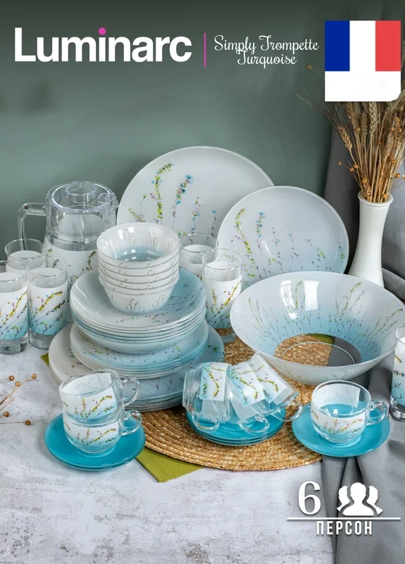 طقم اركوبايركس 46 قطعه – Trompette Turquoise – Luminarc