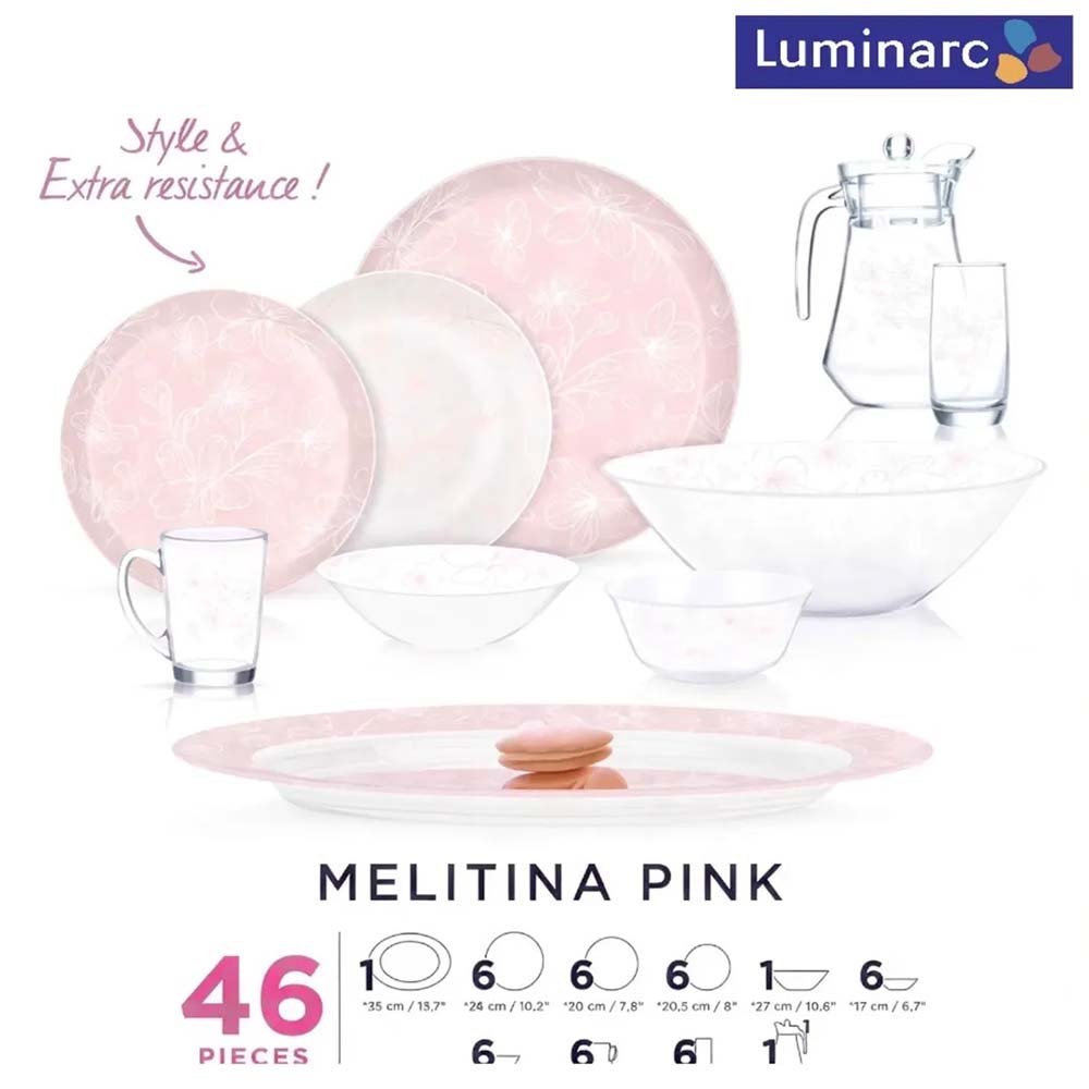 طقم اركوبايركس 46 قطعه – MELITINA Pink – Luminarc
