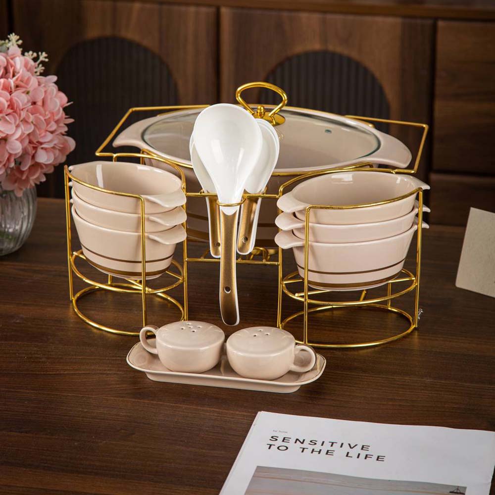 طقم شوربه على حامل – بيج – Queen