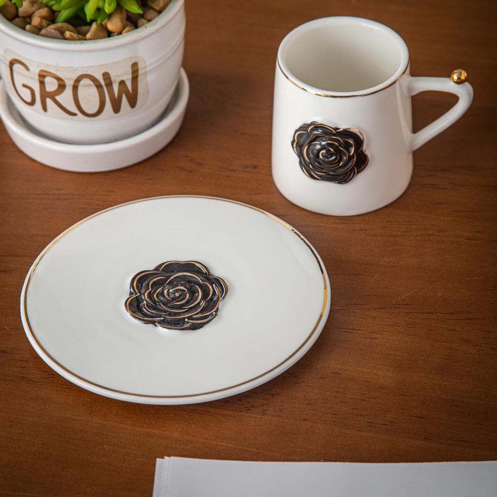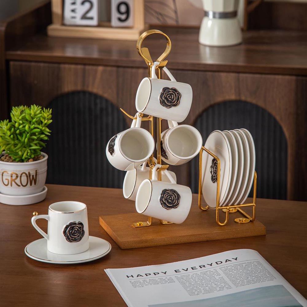 طقم قهوه على حامل – Rosa – White * Black Rose