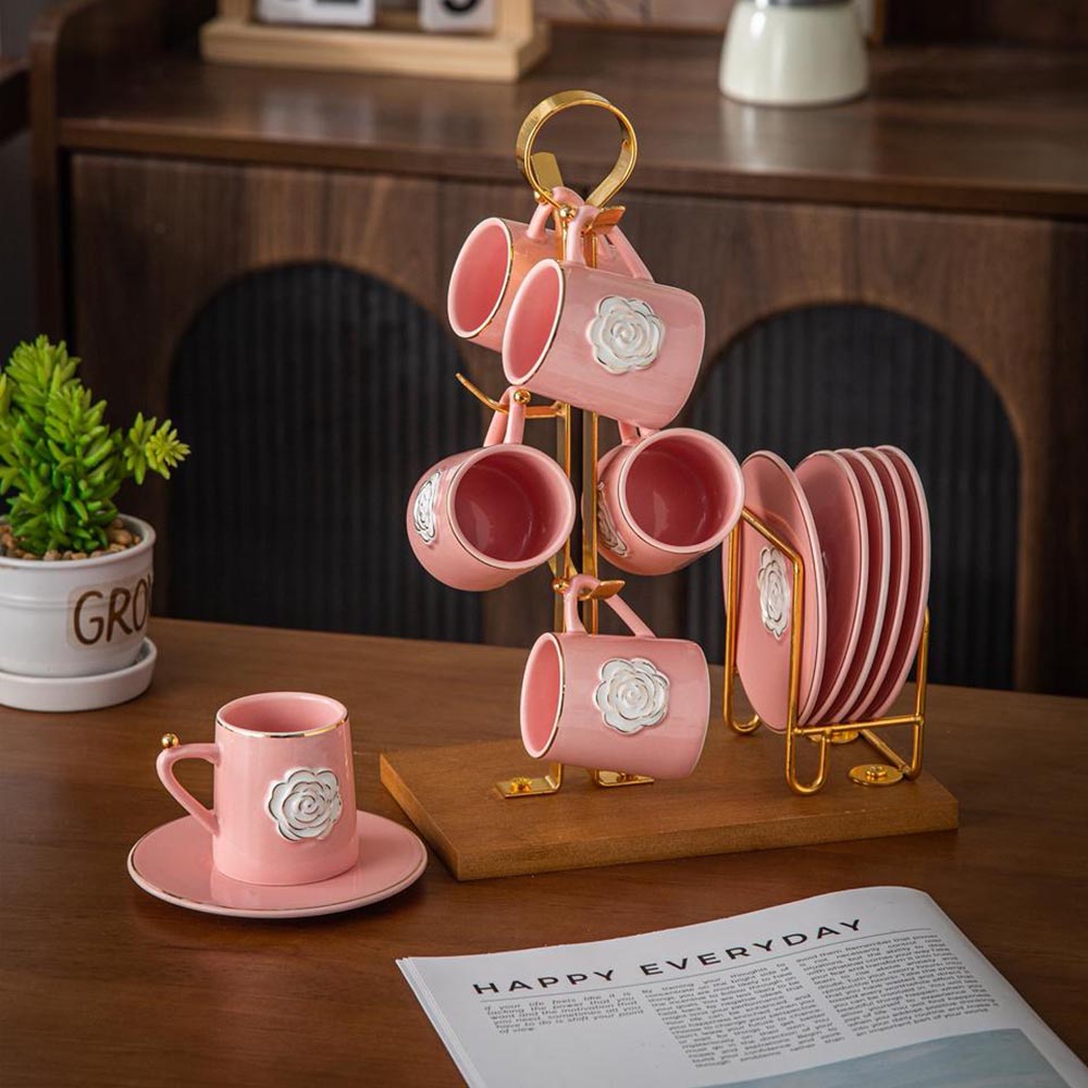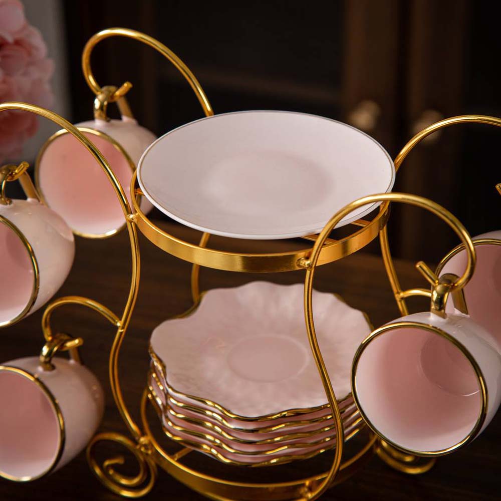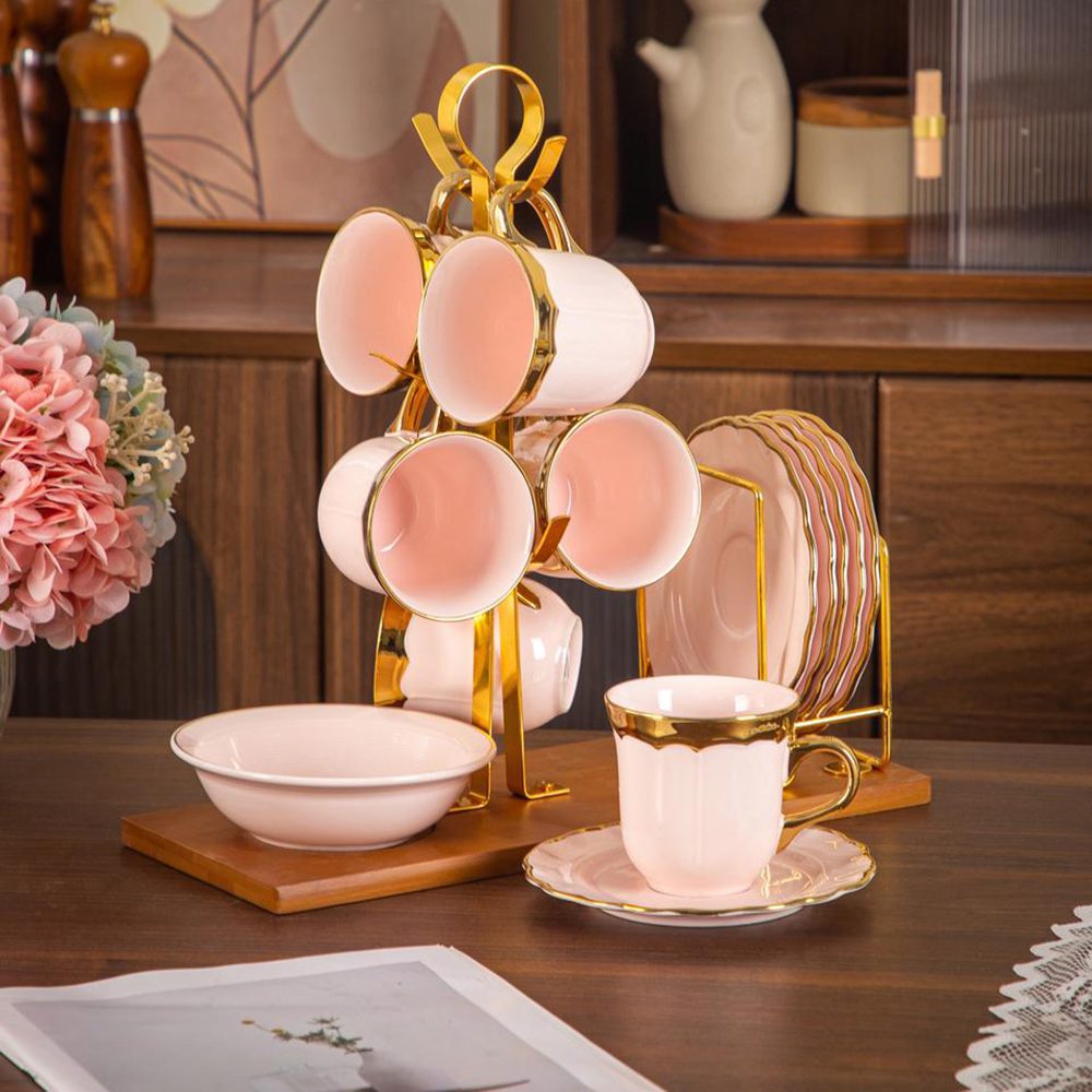 طقم قهوة على حامل بالتمرية – Luxury – Pink