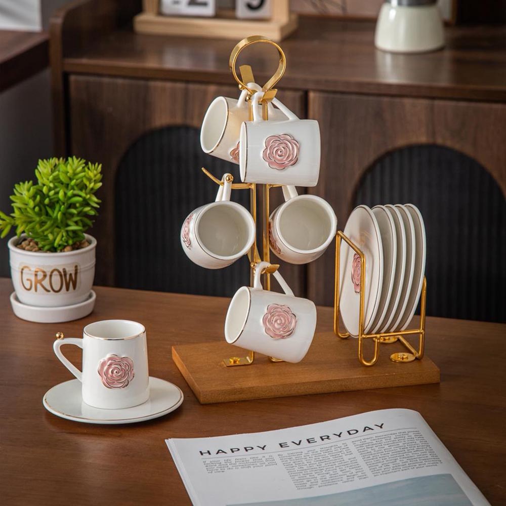 طقم قهوه على حامل – Rosa – White * Pink Rose
