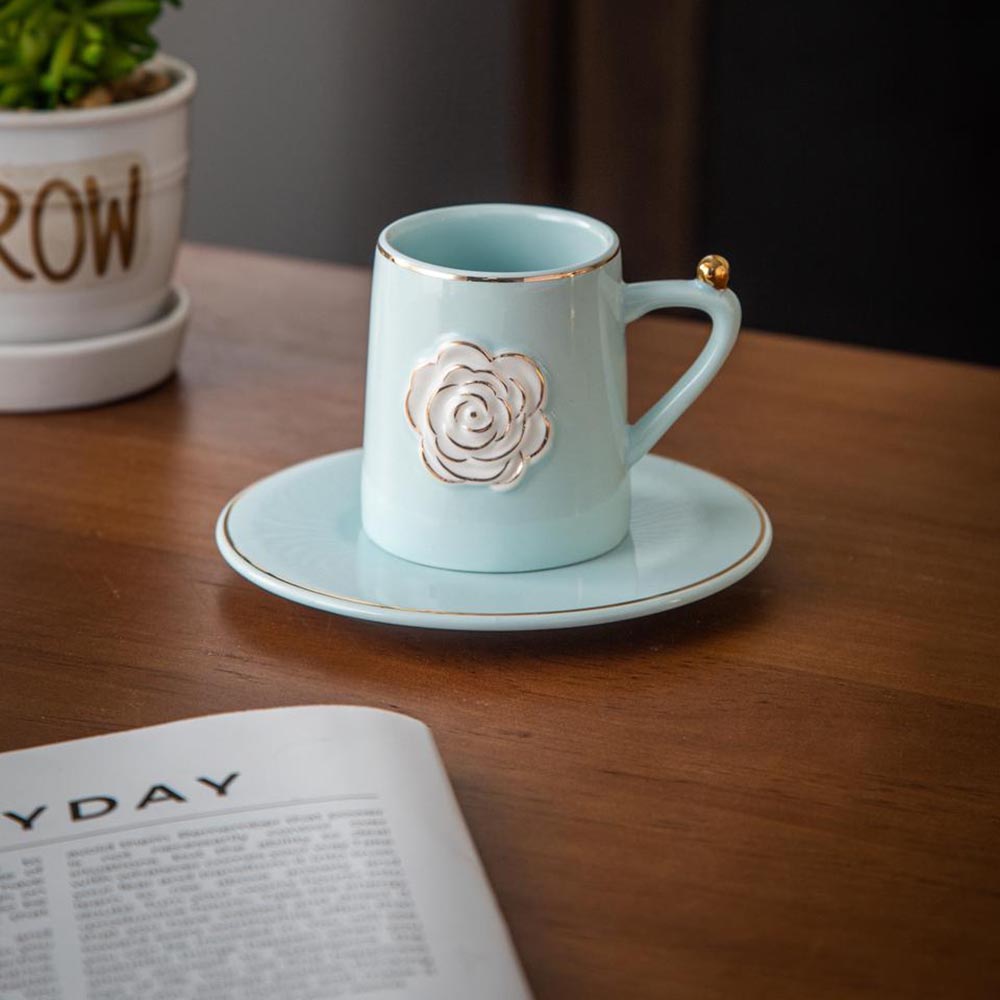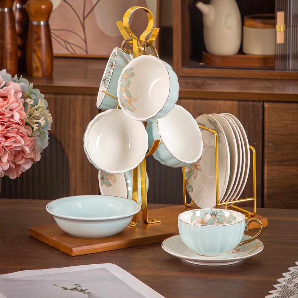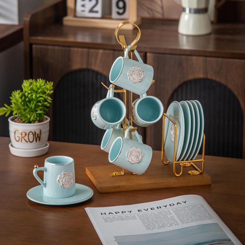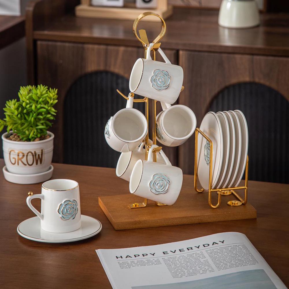 طقم قهوه على حامل – Rosa – White * Blue Rose
