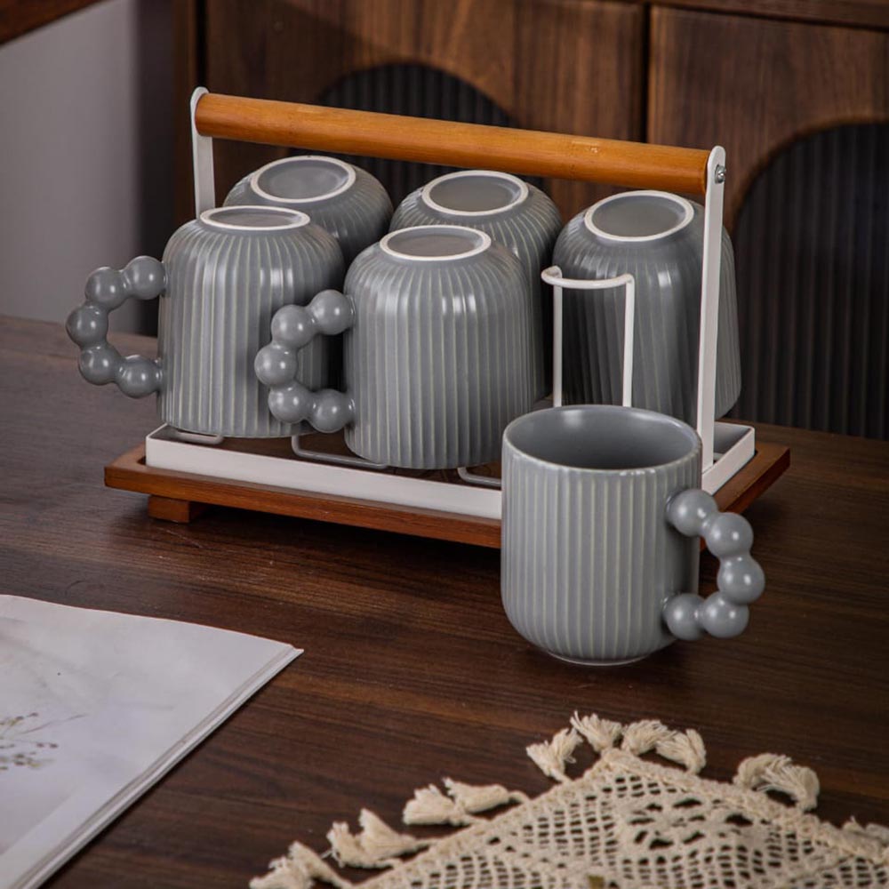 طقم قهوة على حامل بالتمرية – Pumpkin – Gray
