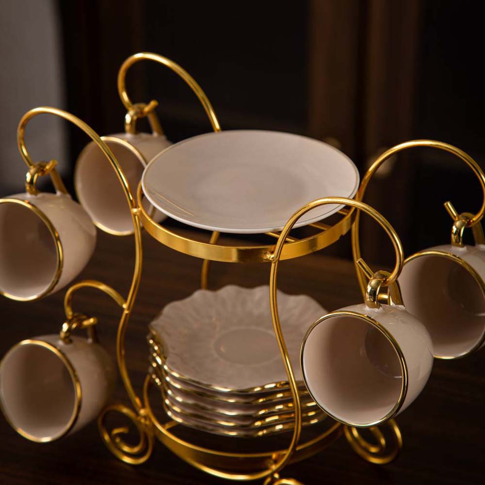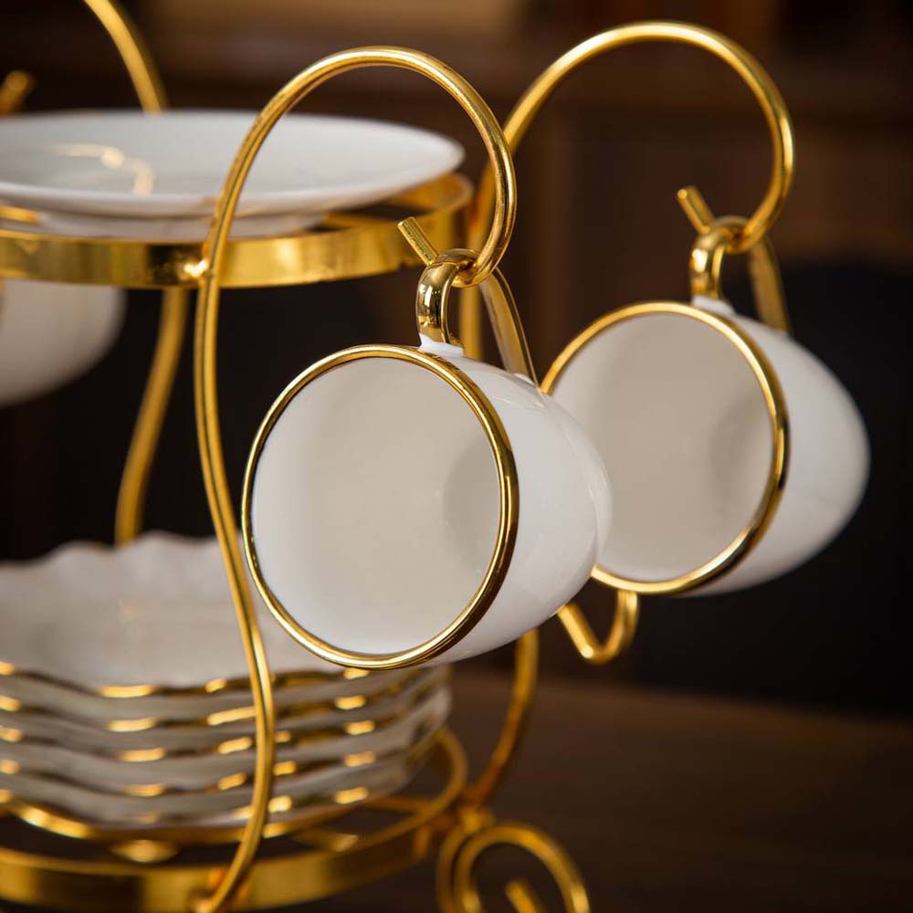 طقم قهوة على حامل بالتمرية – Luxury – White