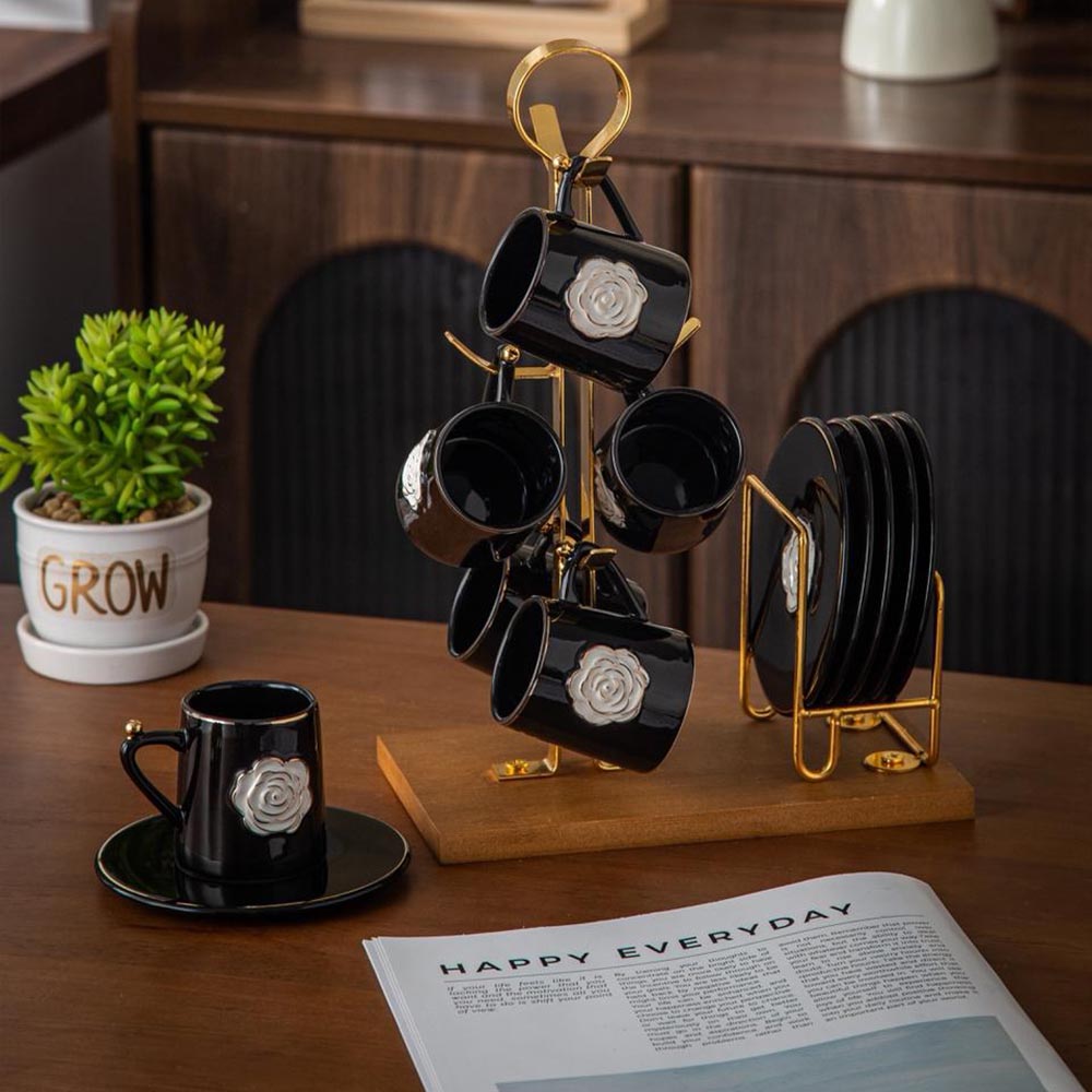 طقم قهوه على حامل – Rosa – Black * White Rose