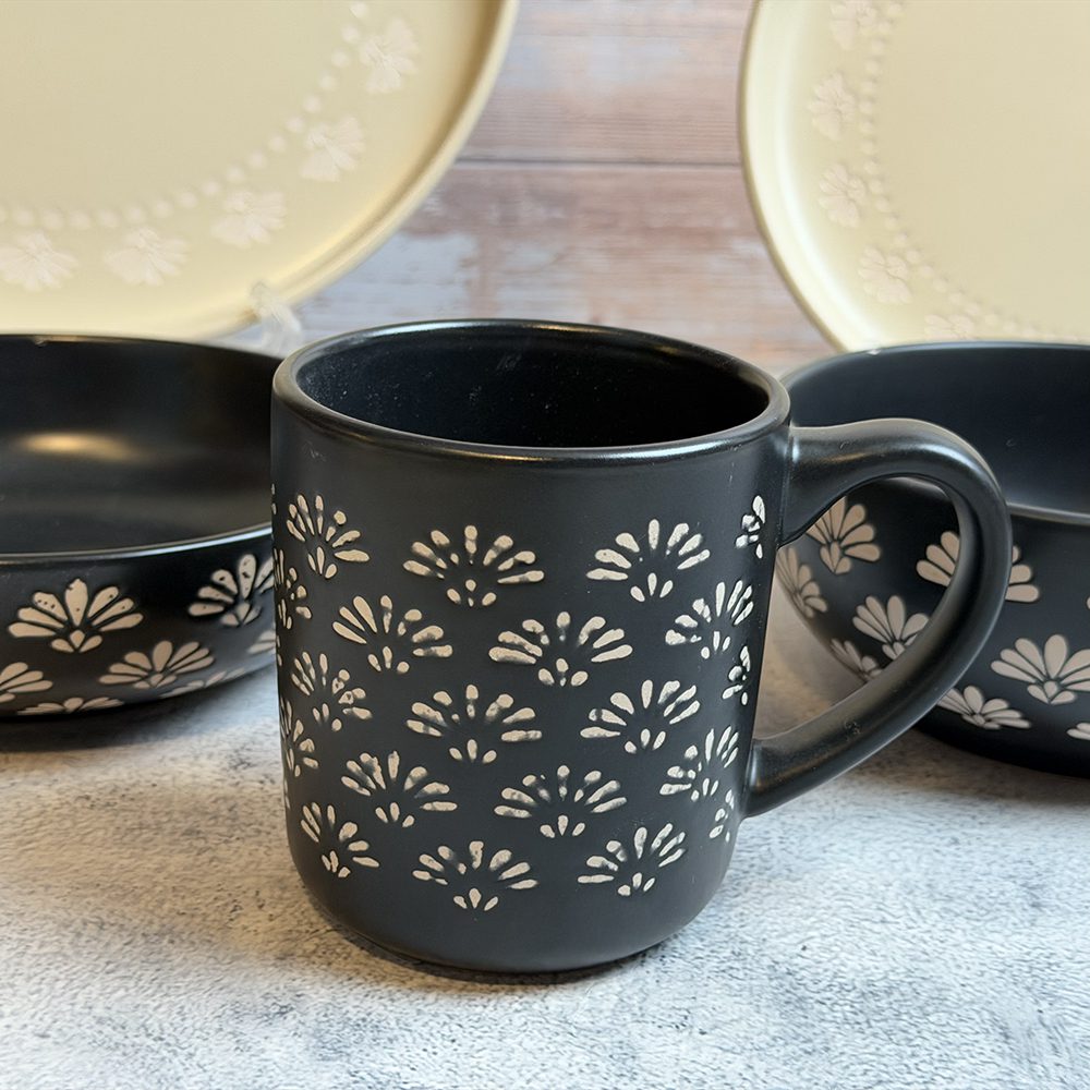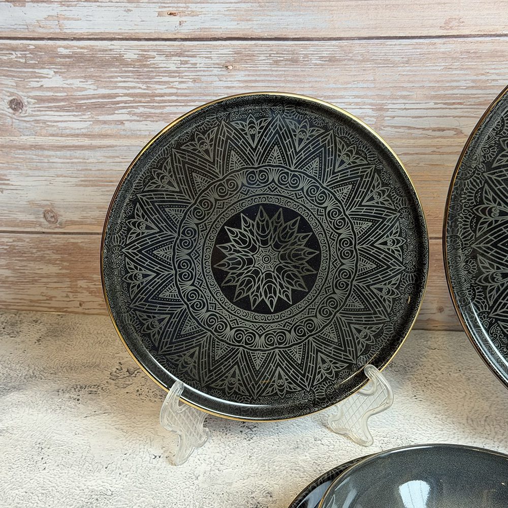طقم عشاء تايلاندى 30 قطعه – Embossed – Black