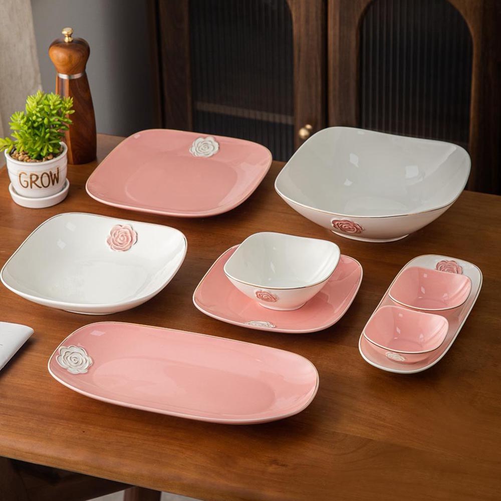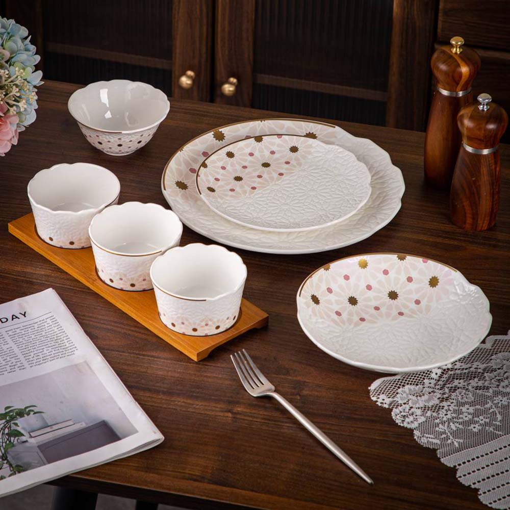 طقم عشاء تايلاندى 30 قطعه – Embossed – Pink