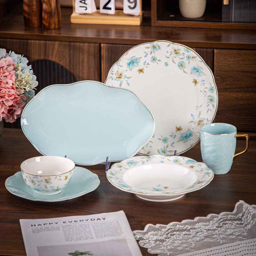 طقم عشاء بورسلين 30 قطعة – Baby Blue Glossy – A05