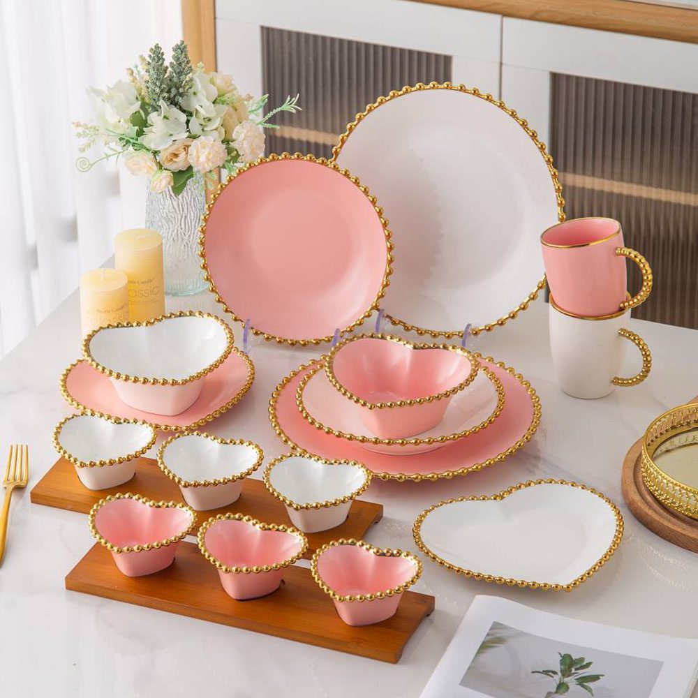 طقم عشاء 34 قطعه – Sun Rise – ابيض*روز