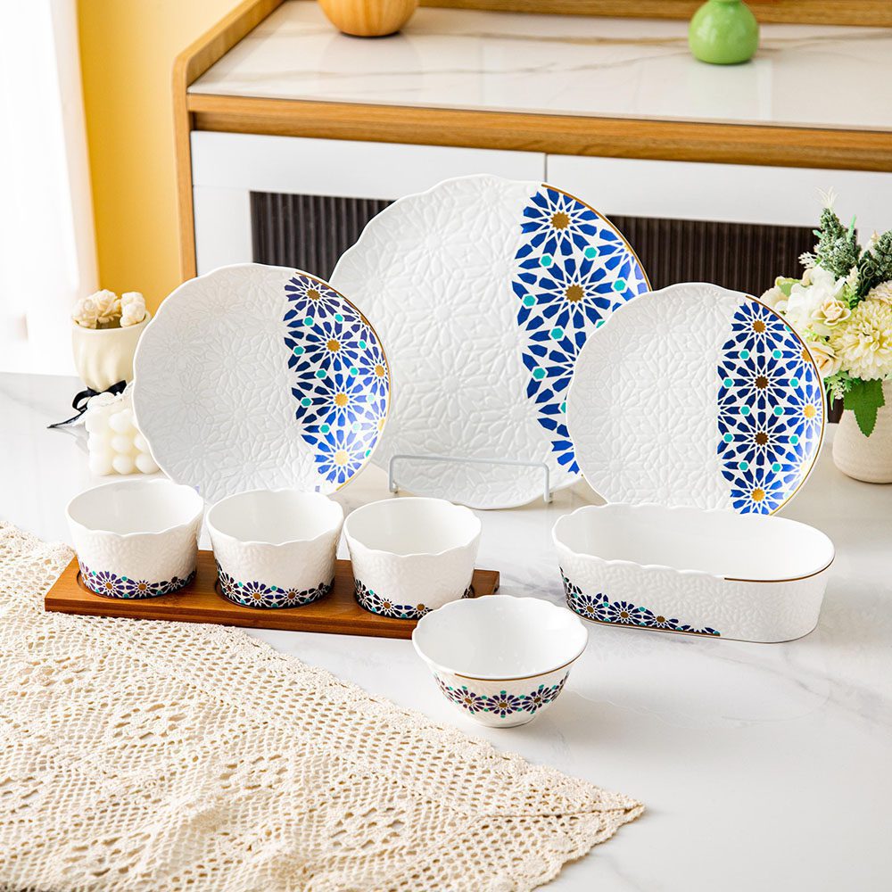 طقم عشاء 29 قطعه – Andalous Design – White*Royal Blue