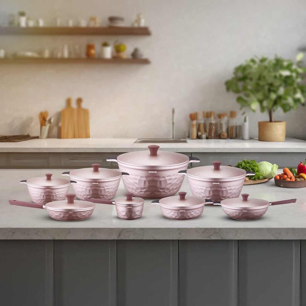 Arshia 16-piece Pink Diamond Cookware Set – 3302
