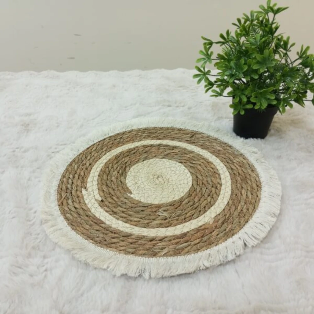 كوستر من الكتان المضفر مقاس 32 سم مستدير عازل للحراره