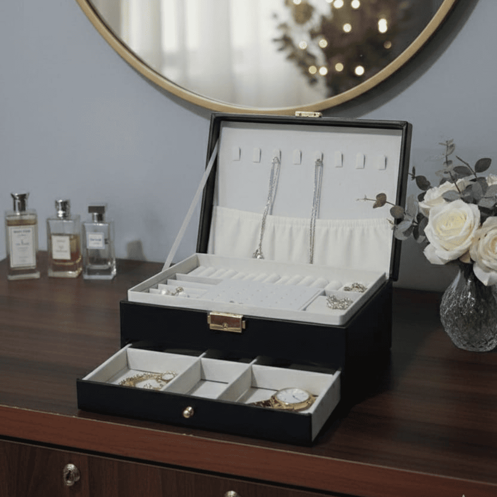 منظم مجوهرات و اكسسوارات بخامة فاخرة من الجلد بدرج