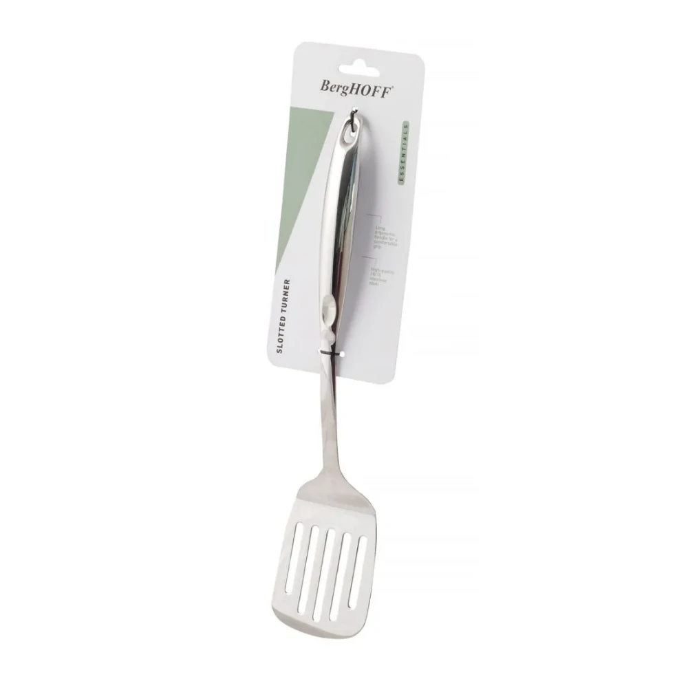لو بتقلّبي الأكل على النار أو بتطلّعيه من الطاسة من غير ما يتكسر، الملعقة المسطحة الاستلس هتسهّل عليك الشغل وتديك تحكّم أحسن.
