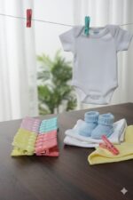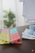 الوصف: مجموعة عملية وملونة من مشابك الغسيل عالية الجودة، مثالية لتثبيت ملابس الأطفال والملابس الخفيفة بأمان