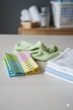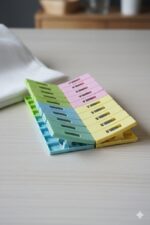 الوصف: مجموعة عملية وملونة من مشابك الغسيل عالية الجودة، مثالية لتثبيت ملابس الأطفال والملابس الخفيفة بأمان