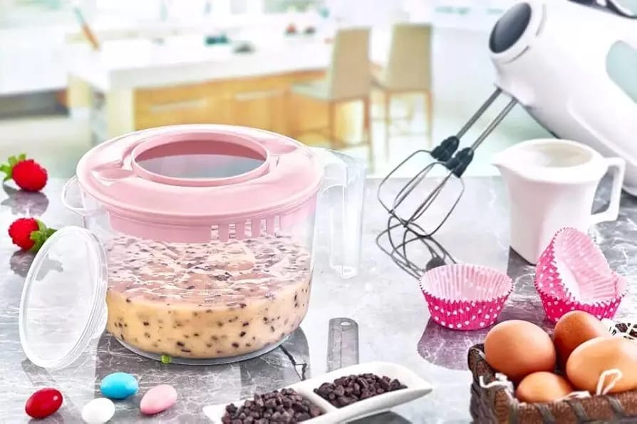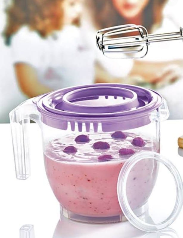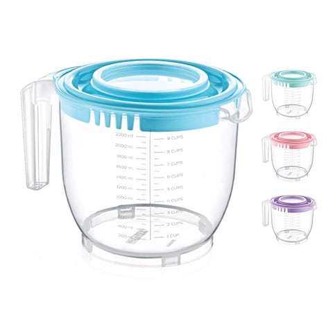 الميزات: مزود بغطاء لمنع تناثر الرذاذ أثناء الخلط، ومدرّج لسهولة القياس، وبه يد لسهولة الاستخدام.