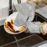 جوانتيات سلكية لغسيل الأطباق :—- مادة ألياف البامبو، تتميز هذه الجوانتيات المنزلية بأنها مصنوعة من ألياف البامبو، بقدرة امتصاص قوية وملمس ناعم ومقاوم للتآكل، ولها خصائص فريدة مضادة للروائح.
