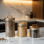 لمسة ديكورية: ليس مجرد طقم تخزين، بل هو قطعة ديكور فنية تليق بالرخام والأسطح الحديثة.