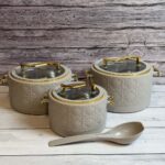 حافظة طعام هندي 4 قطع بغطاء زجاج وقلب استيل تجمع بين العملية والشكل الأنيق، حيث تأتي بقلب داخلي من الستانلس ستيل عالي الجودة للحفاظ على حرارة الطعام لفترة أطول، مع غطاء زجاجي شفاف يسهّل رؤية المحتوى دون الحاجة لفتح الحافظة. تصميم عملي يناسب الاستخدام اليومي والتقديم الراقي.