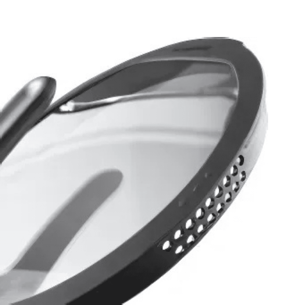 يأتي مع غطاء زجاجي شفاف بحافة سيليكون يمكن تثبيته رأسيًا على القدر لتوفير اليدين أثناء التحريك أو التقديم