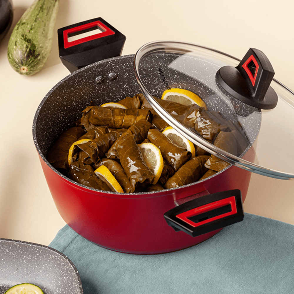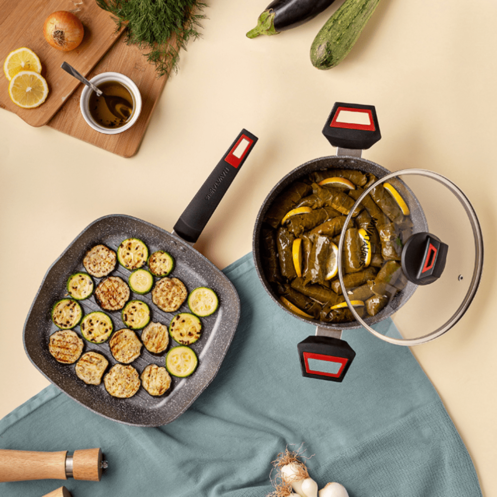 أواني طهي TAURUS من الألومنيوم عالية الجودة، مزودة بـ 5 طبقات من طلاء الحجر غير اللاصق.