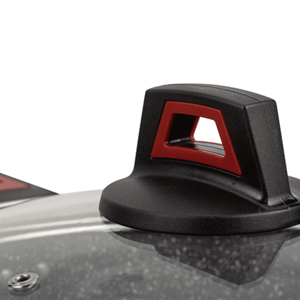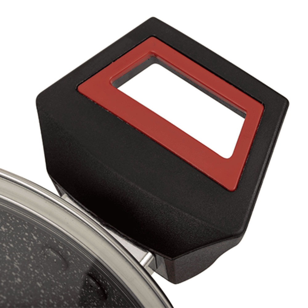مقبض إرجونومي من الباكليت يظل بارداً حتى بعد ساعات من الطهي، مما يسهل استخدام المقلاة بأمان.