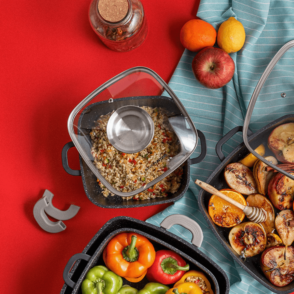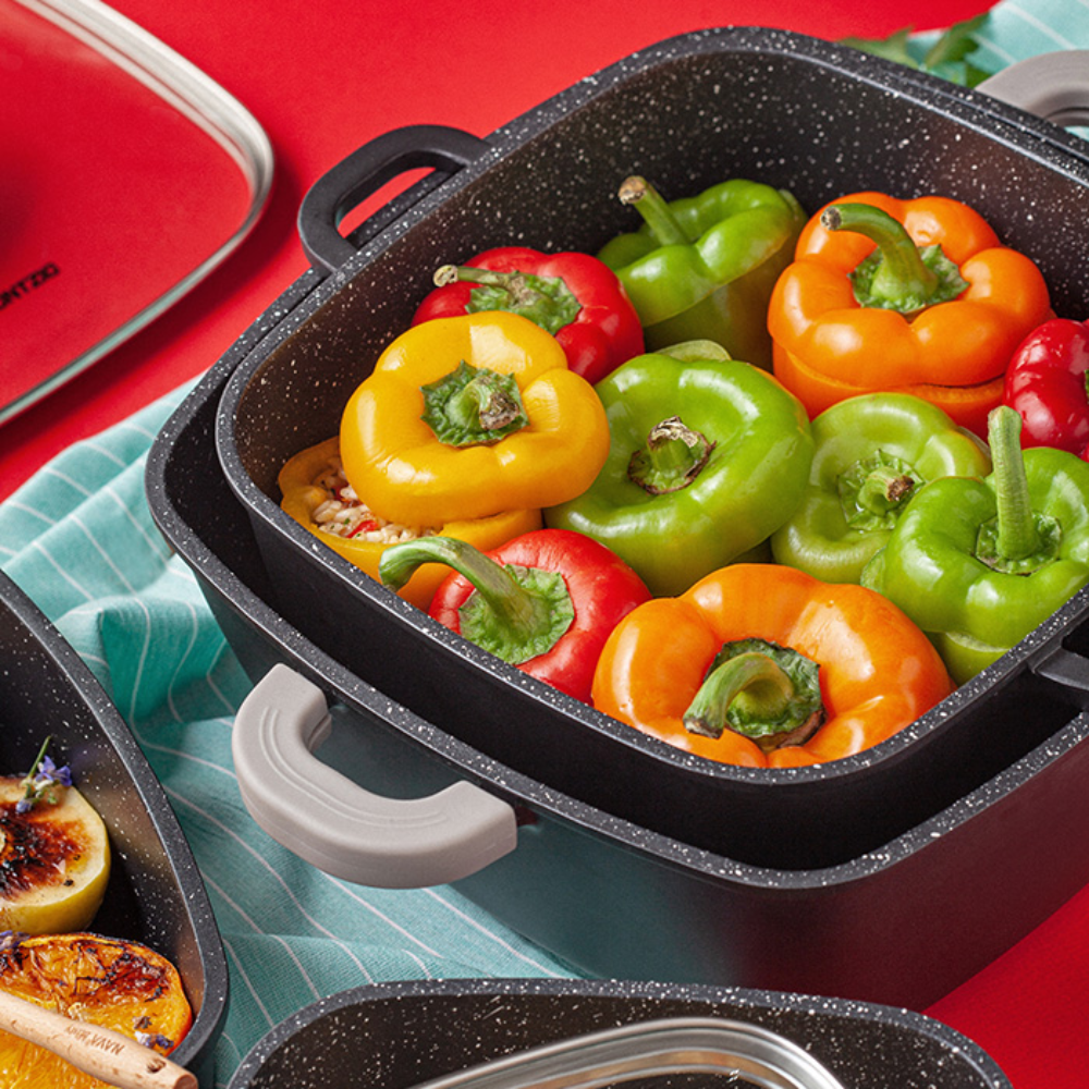 كن أول من يقيم “حلة مربعة مصبوبة “فونتسيو” مع طلاء حجري غير لاصق 28 سم – NAVA”