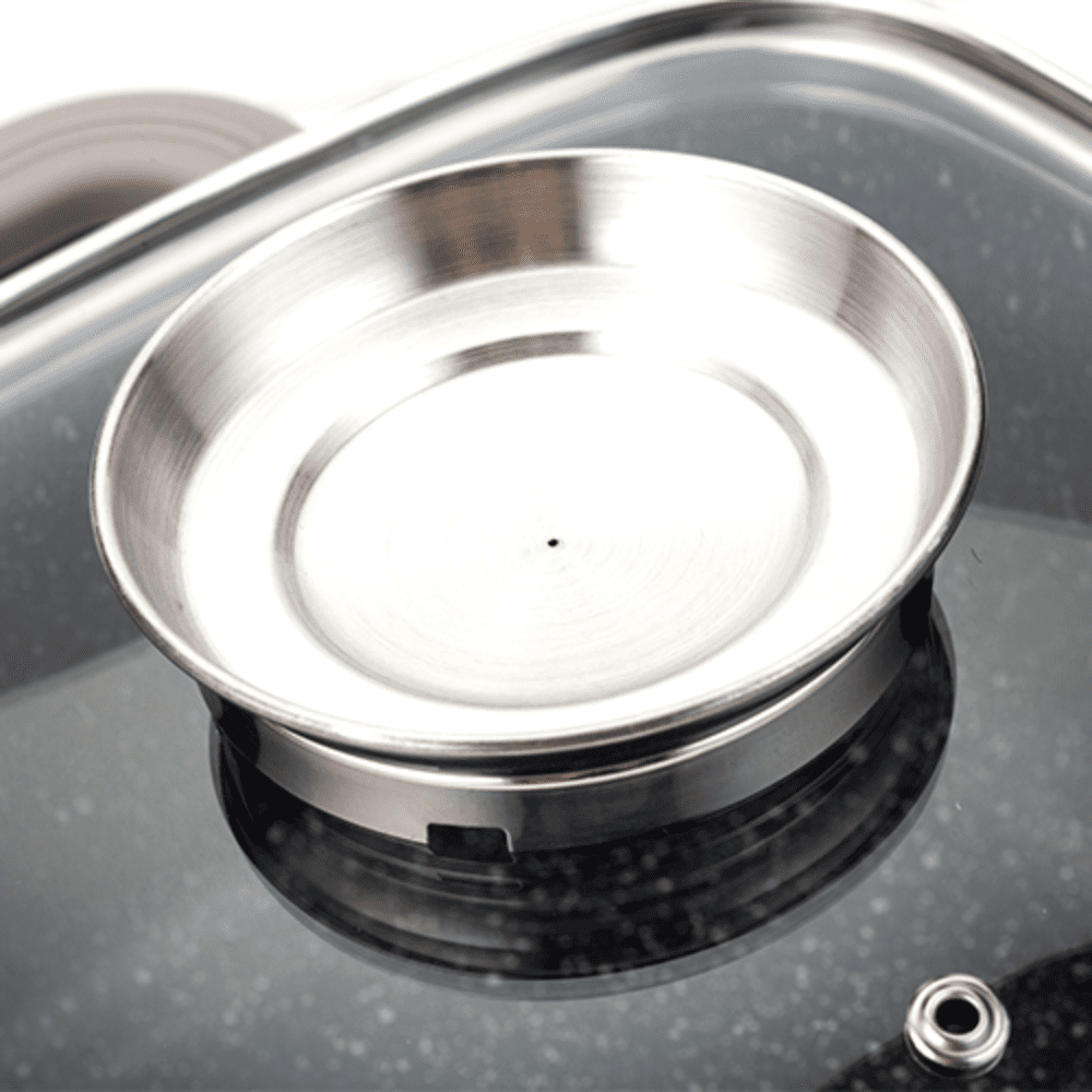 قاع سميك ومعدن مضغوط بيساعد على توزيع الحرارة بالتساوي