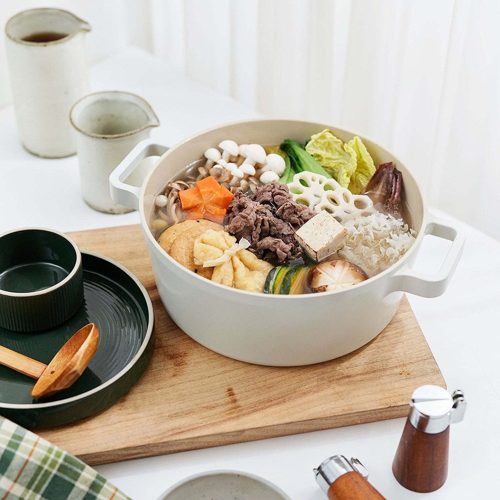 حلة أنيقة وعملية بتصميم بسيط باللون الهادئ، مثالية لتحضير مختلف الأطباق اليومية. مصنوعة من السيراميك المقاوم للالتصاق، آمن وسهل التنظيف، ويوزع الحرارة بشكل مثالي.