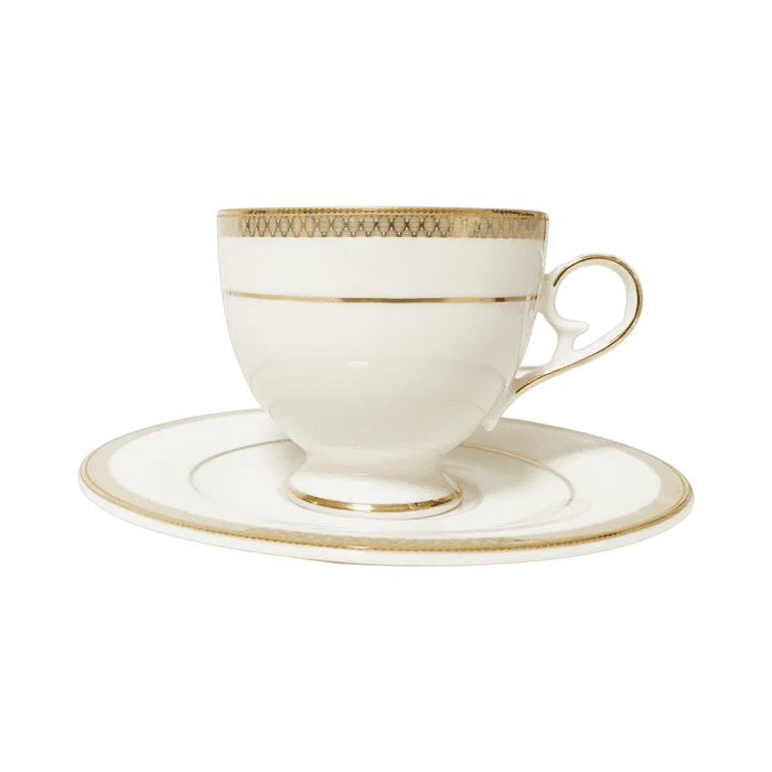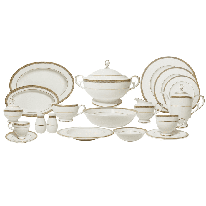 رويال ألفريدو طقم سفرة بورسلين 112 قطعة أوف وايت وذهبي – MO001