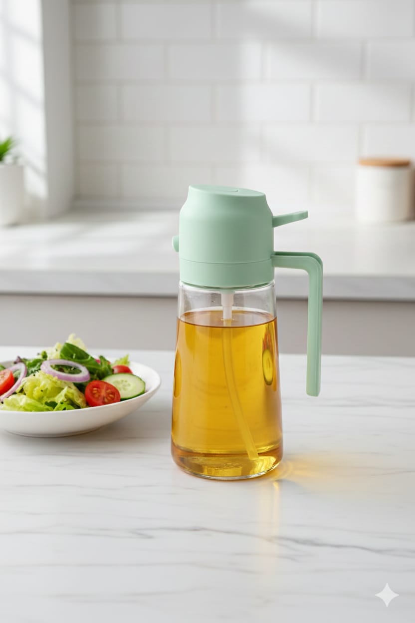 فوهة رش دقيقة: تتميز زجاجة بخاخة زيت الزيتون بفوهة توفر رذاذًا دقيقًا أو تدفقًا ثابتًا، مما يوفر تحكمًا دقيقًا. مثالية للرش أو التوزيع، مما يجعلها زجاجات زيت عطري للمطبخ