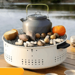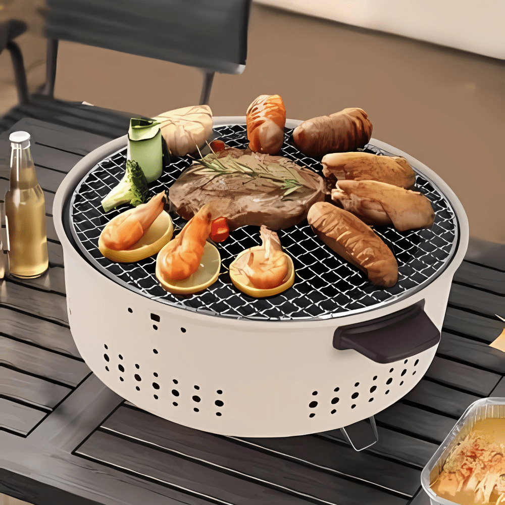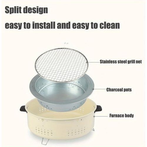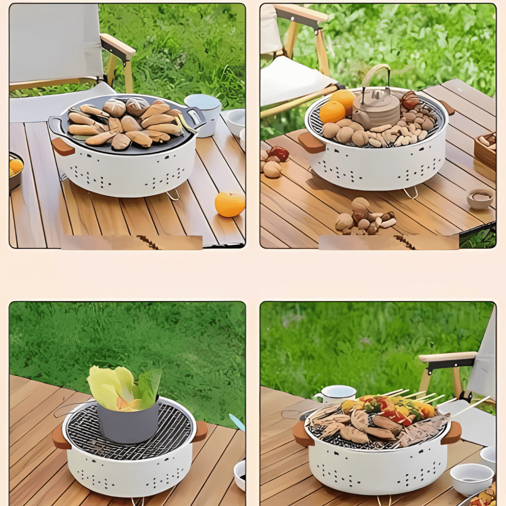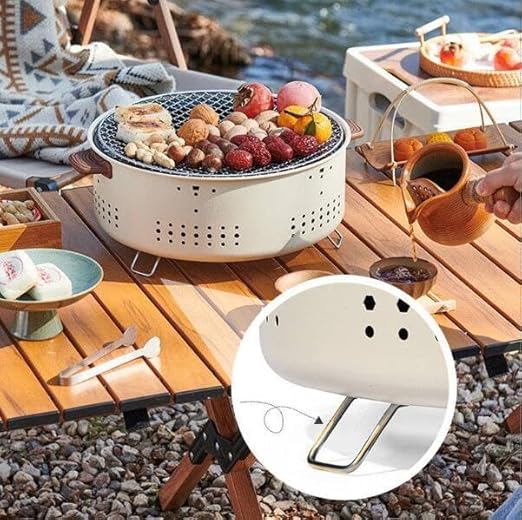 تصميم متعدد الاستخدامات:تُستخدم لشواء اللحوم، تحضير الشاي، وتسخين الطعام بسهولة. مزودة بشبكة شواء كثيفة تمنع سقوط الطعام.