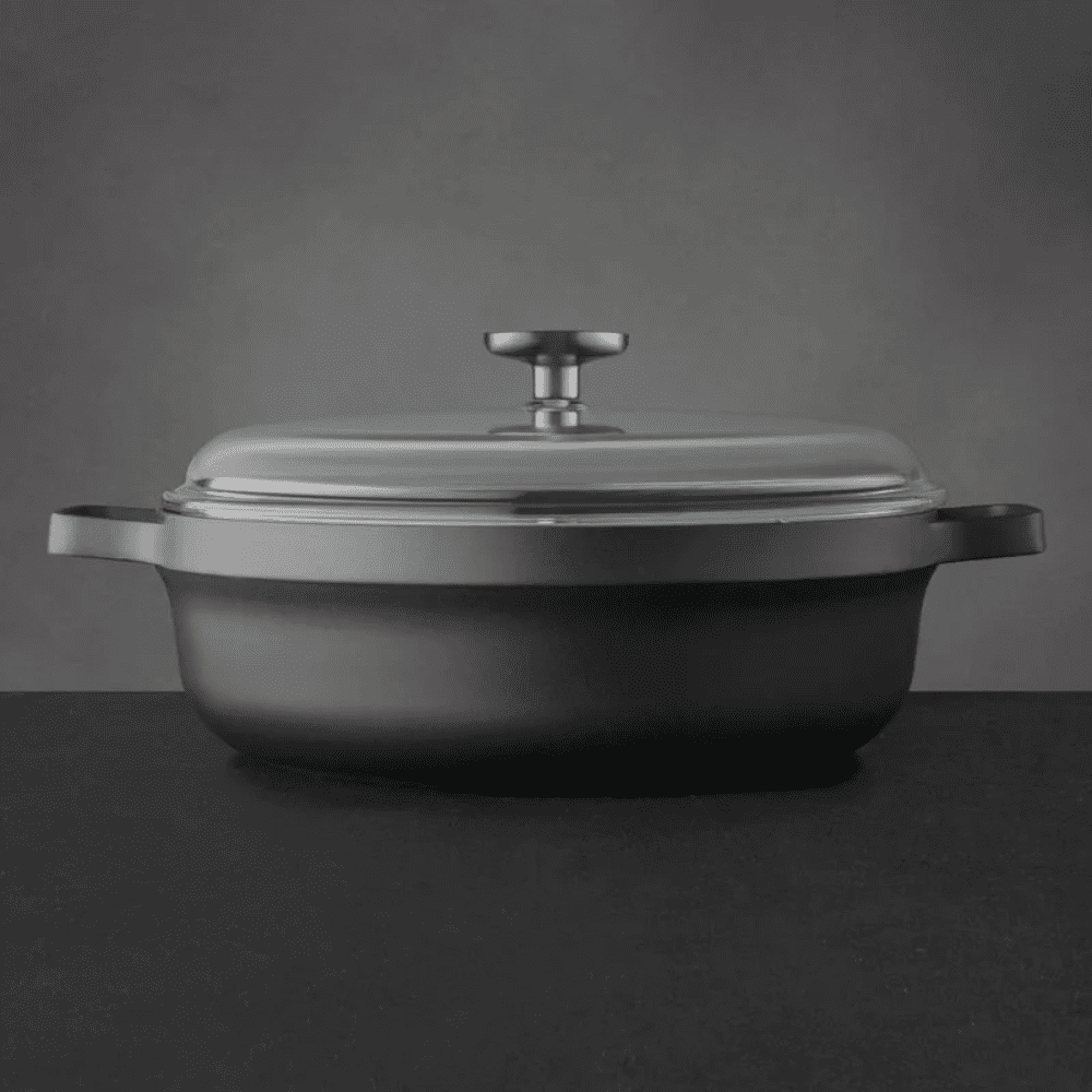الطاجن بحجمه 27 سم مناسب لتحضير كميات كبيرة، وخامته الثقيلة تمنحك ثبات أثناء الطهي وتساعد على الاحتفاظ بالحرارة. التصميم البيضاوي العملي يجعل الطهي سهل والاستخدام طويل الأمد.