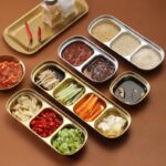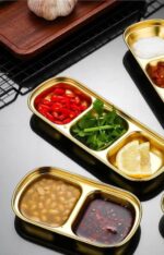 تم تصميم طبق الصوص المستطيل بتقسيمات (عينين / 3 عيون / 4 عيون) من مواد عالية الجودة مع لمسة ذهبية تضيف فخامة وأناقة لأي سفرة. مناسب للمطاعم، ولعزومات البيت والمناسبات الخاصة، ويجمع بين الجمال والعملية في تقديم الصوصات بشكل مرتب وشيّك.