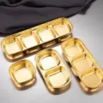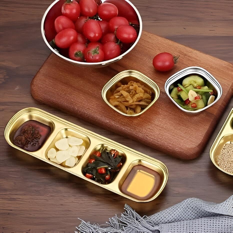 طبق تقديم صوص استانلس ذهبي مستطيل مقسم