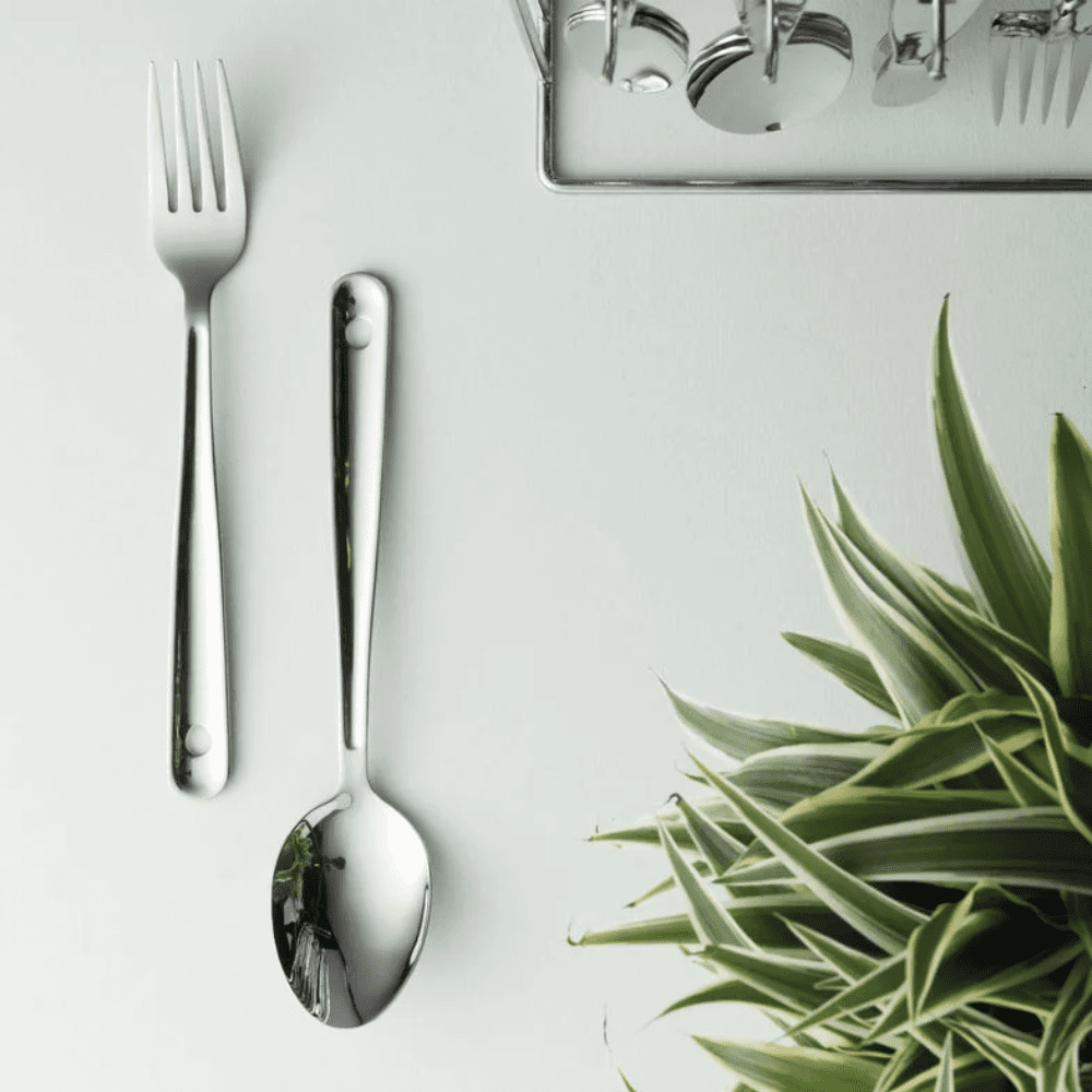 سواء كنت تبحث عن طقم أساسي للبدء أو ترغب في استبدال بعض أدوات المائدة القديمة، فإن هذا الطقم المكون من 25 قطعة يوفر لك كل ما تحتاجه للاستمتاع بوجبة شهية.بفضل الحامل العملي، يمكنك تخزين الطقم بسهولة على سطح المطبخ أو داخل خزانة المطبخ ليكون دائمًا في متناول اليد.
