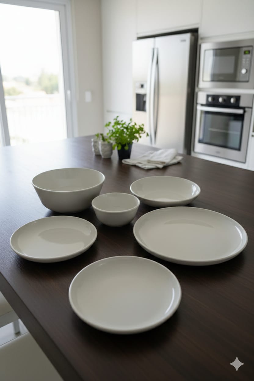 6 أطباق مسطحة (600 مل لكل منها) – مثالية لتقديم المقبلات أو السلطات أو الأطباق الرئيسية بأناقة. 6 أطباق (1 لتر لكل منهما) – أطباق متعددة الاستخدامات يمكنها استيعاب الوجبات الكبيرة أو الأطباق الشهية. 6 أطباق عميقة (900 مل لكل منها) – مثالية للحساء أو اليخنات أو المعكرونة، مما يوفر عمقًا واسعًا للإبداعات اللذيذة.