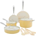 طقم اوانى طهى 9 قطع بلون الاصفر الزاهى-greeN pan