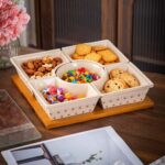 يتميز الطقم بـ نقوش أندلسية دقيقة تعكس الطابع التراثي الراقي، مع تقسيم عملي يساعدك على تنظيم أكثر من نوع تسالي في نفس الوقت. كما يأتي مع غطاء زجاج شفاف للحفاظ على المحتوى نظيفًا، وقاعدة خشبية قوية تضيف لمسة دفء وفخامة لسفرة الضيافة.