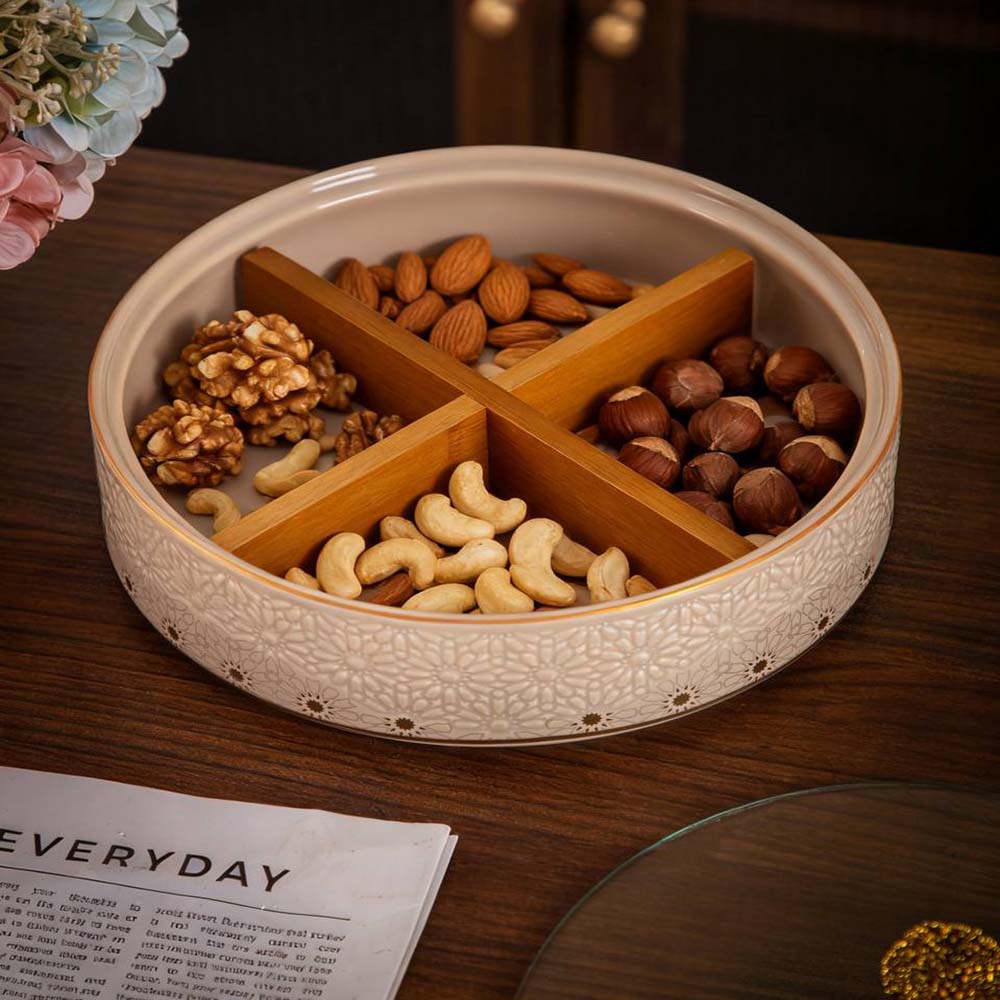 قدّم الضيافة بأناقة مع طقم تسالي وكاندي من Andalous Design بتصميم فاخر أنيق. الطقم مزود بأقسام متعددة تسمح لك بتنظيم مختلف أنواع المكسرات والحلويات بشكل مرتب وجذاب، ليكون مثالياً للمناسبات الخاصة، التجمعات العائلية، أو حتى كقطعة ديكور راقية في منزلك.