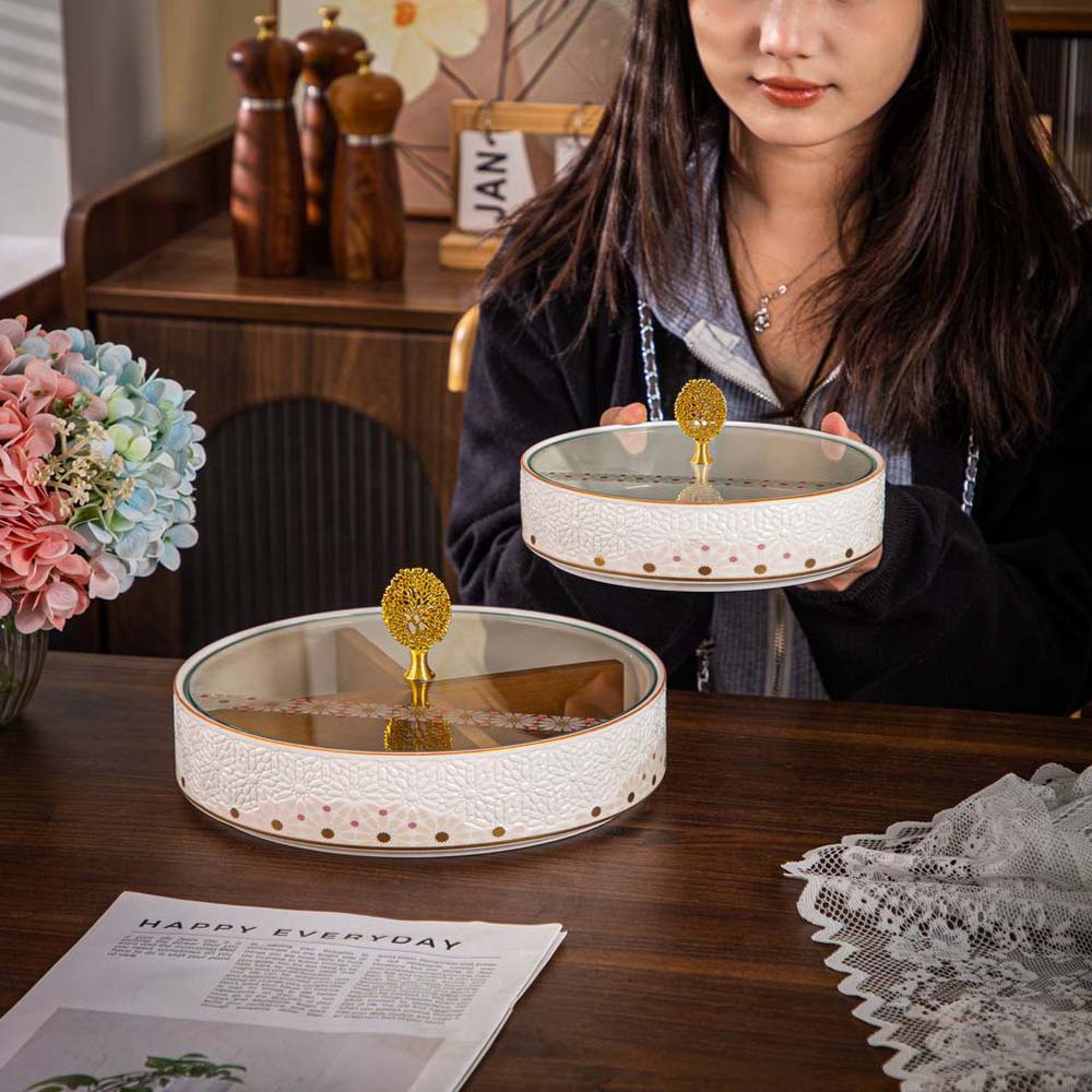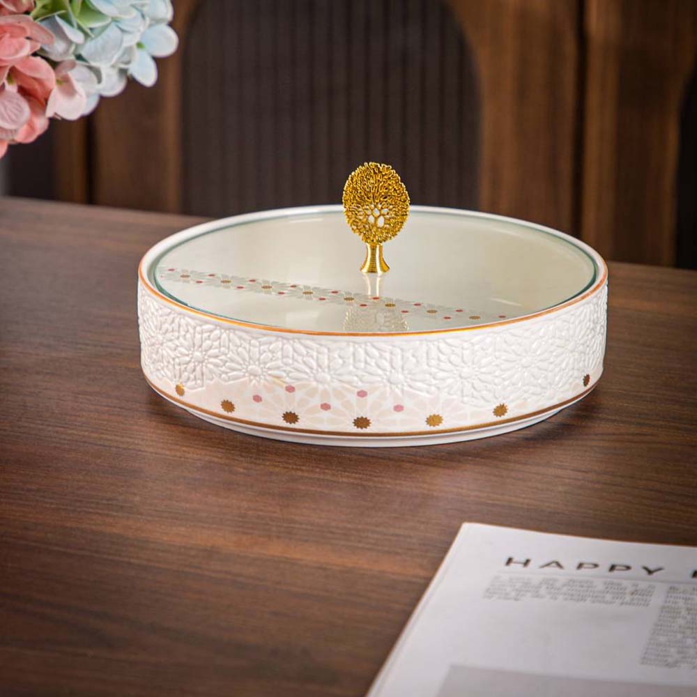 غطاؤه الشفاف يحافظ على نضارة المحتويات، بينما يضيف المقبض المزخرف لمسة فخمة تعكس ذوقك الرفيع.