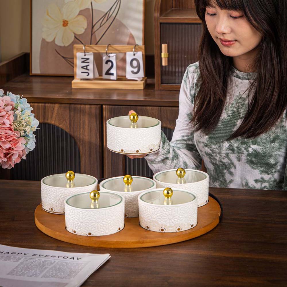طقم مكوّن من 6 قطع مع صينية للتنظيم وسهولة التقديم