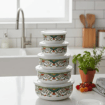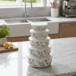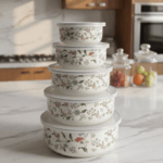 هذا طقم حافظات طعام (بوالات) أنيق وعملي، يجمع بين المظهر التراثي الجذاب والكفاءة في التخزين.
