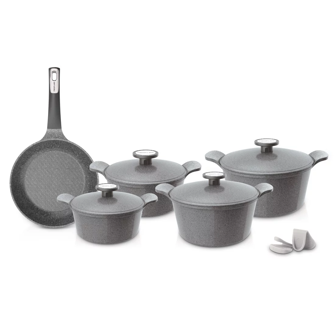 طقم حلل جيرانيت مضلع 9 قطع – رصاصيبراند: Neoflamبلد الصنع: كورياالخامة: جيرانيت غير لاصق