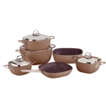 طقم حلل جيرانيت 10 قطعه مربع يد استيل بني – سافلون